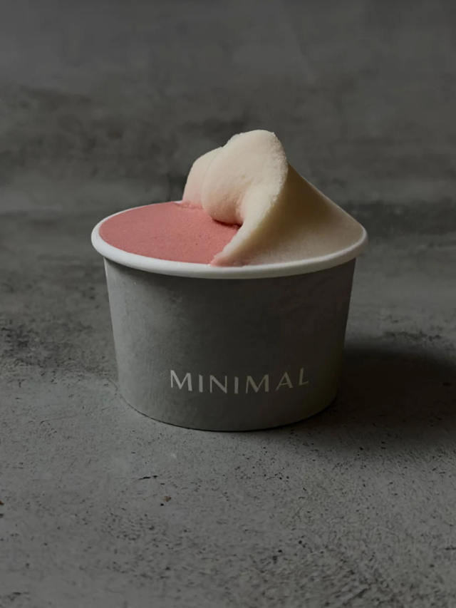 Escondido em uma ruela na cidade de Taichung, o Minimal tem uma fachada sóbria, em tons de cinza e carvão, que contrasta com as sobremesas coloridas servidas lá dentro