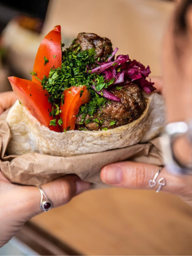 Um dos melhores é o kebab de origem, no qual o pão pita é recheado com carne bovina moída grelhada temperada à moda árabe, homus, salada de repolho, picles e molho tahine