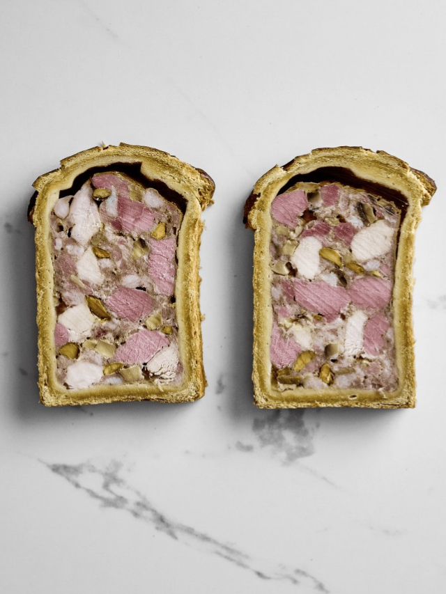 Além das rilletes e saucisses, o carro-chefe é o pâté en croûte, uma terrine de carnes e vegetais envolta em massa amanteigada